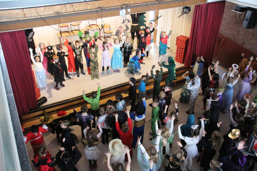 Viel los ist in unserer Schule ja immer, aber sooo bunt ist es tatsächlich nur einmal im Jahr. Auch in diesem Jahr haben wir wieder Fasching gefeiert. Plötzlich sitzen dann Prinzessinnen neben Piraten und Kühe, Pfaue und Löwen tanzen und spielen friedlich miteinander.