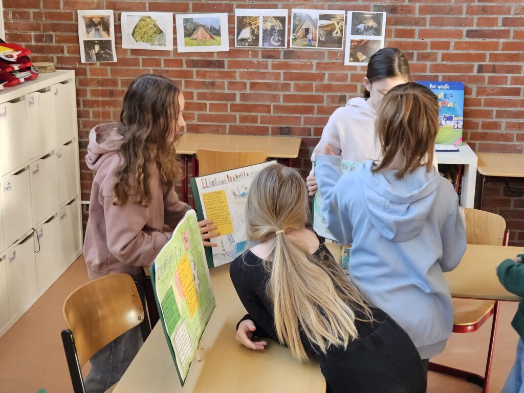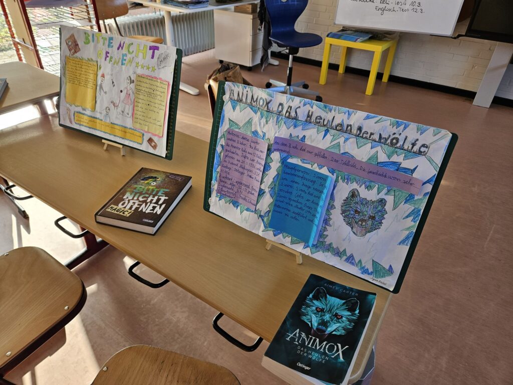 Wir, als Klasse 4b, haben in Deutsch eine Buchvorstellung gemacht. Zuerst haben wir unser Buch ganz gelesen und danach ein Plakat mit Überschrift und Bildern gestaltet. Außerdem haben wir die Zusammenfassung des Buches und wissenswerte Sachen über das Buch ( Autor oder Autorin, Seitenzahl, Verlag ….) aufgeschrieben. Daraufhin haben wir mit dem Buch einen Vortrag vor der Klasse gehalten. Am Ende haben wir uns unsere Plakate in einer Ausstellung noch einmal gezeigt. Wir haben uns von den anderen Kindern die Bücher ausgeliehen, die wir gut fanden und haben dann in das Buch reingelesen. Man durfte sich dann die Bücher noch ausleihen.